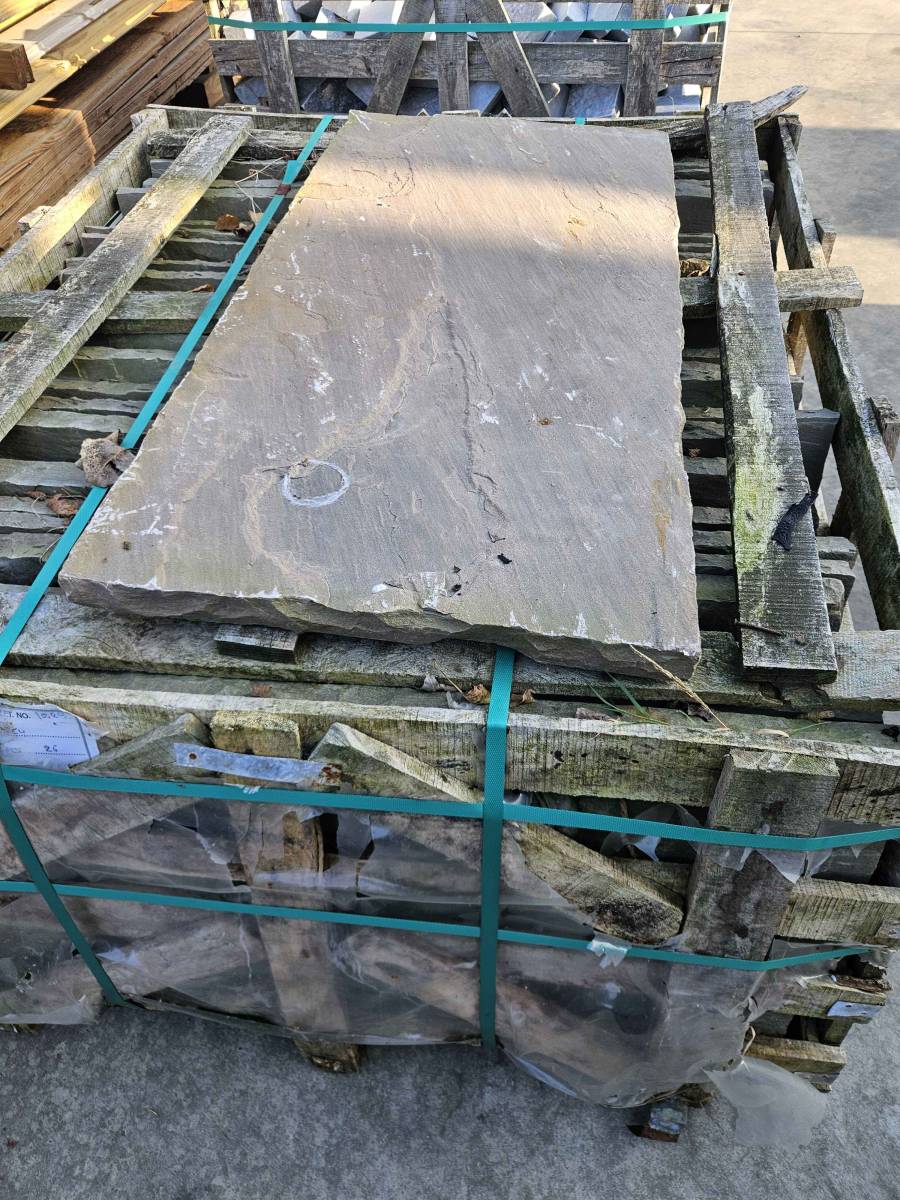 Palis en Grès Gris avec une finition « clivée » qui renforce le côté naturel de la pierre.